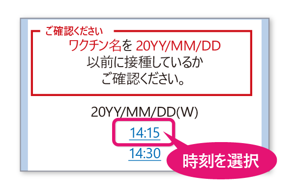 前回の接種日を確認の上、ご希望の時間帯をお選びください。
