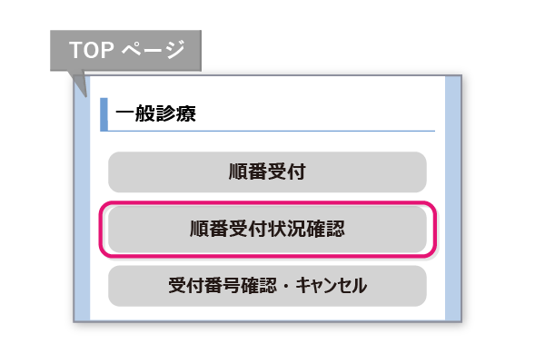TOPページから[状況確認画面]ボタンをクリックしてください。